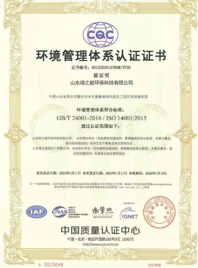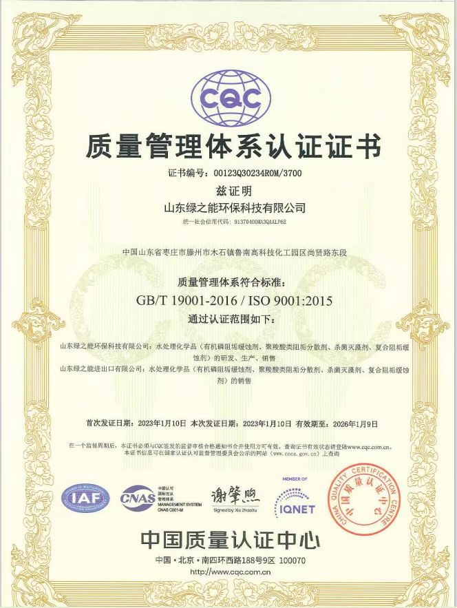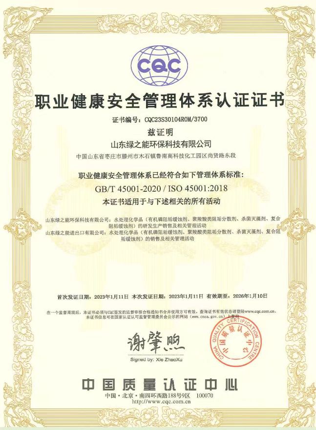 綠之能順利通過(guò)中國(guó)質(zhì)量認(rèn)證中心(CQC)的ISO專家評(píng)審組的審查,取得了ISO9001質(zhì)量管理體系認(rèn)證、ISO14001環(huán)境管理體系認(rèn)證、ISO45001職業(yè)健康安全管理體系認(rèn)證。